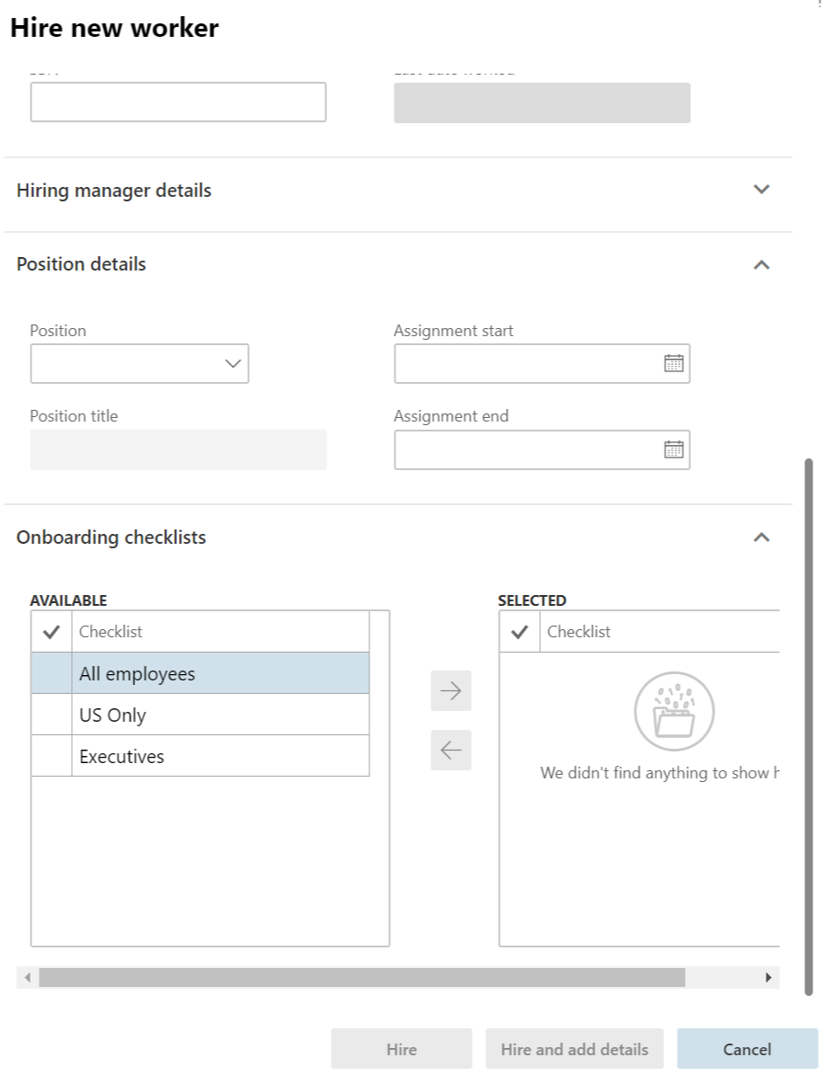 You can also select checklist when you hire an employee and are registering them in Talent Core.