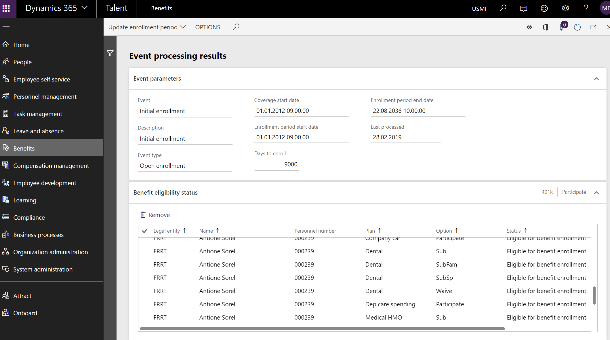 When you click show results you get a list of all the persons that are eligible for the benefits.