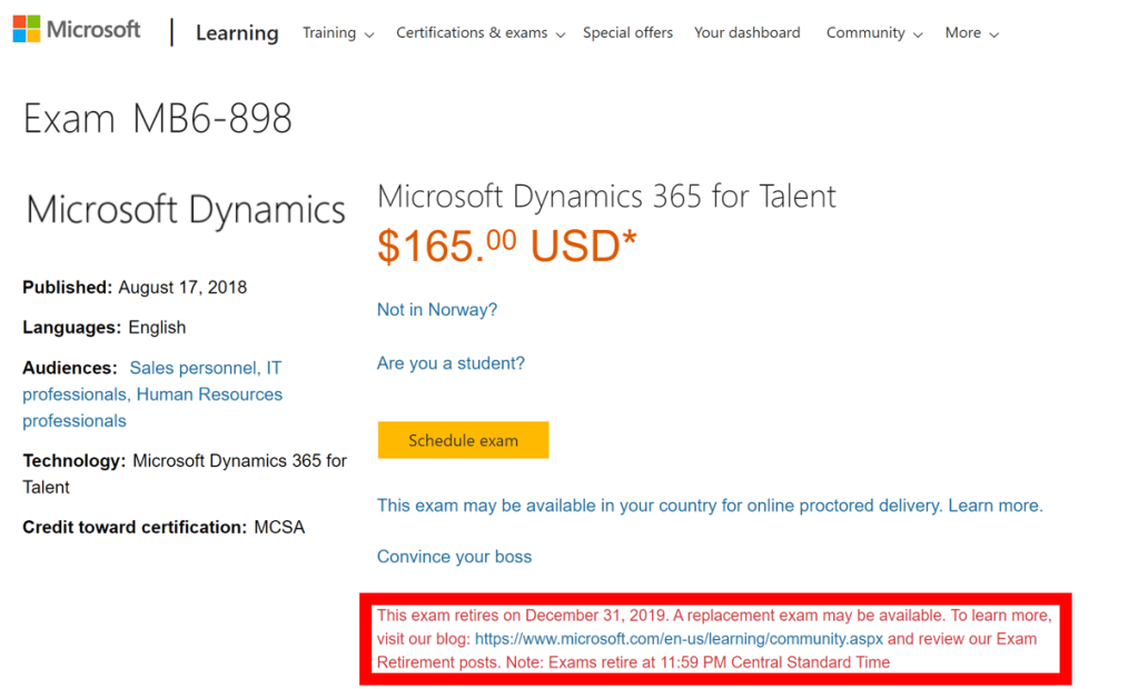 Last week as I was getting ready for my presentation at D365 Focus Brussels I went in to the certification page of MB6-898 and I saw this red announcement