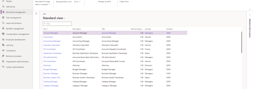 - Areas of responsibility is the last section and is the section where you register what responsibilities this job has, it’s used to indicate the work roles, processes, and products that a worker in a position for that job would be responsible for.
