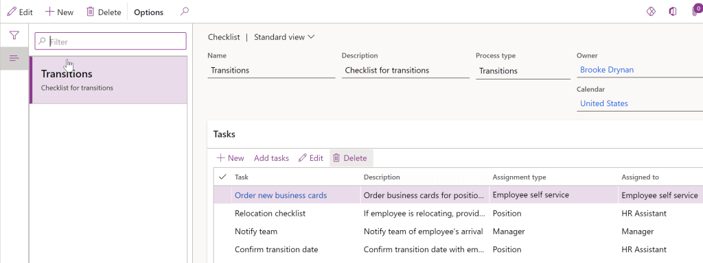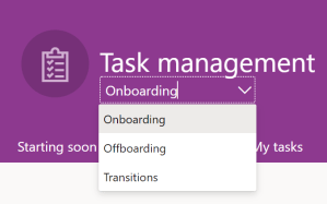 In task management you have access to onboarding, offboarding and transitions. If you want to see the different tasks in the different areas you have to choose the right are in the dropdown below Task management. The default is onboarding.
