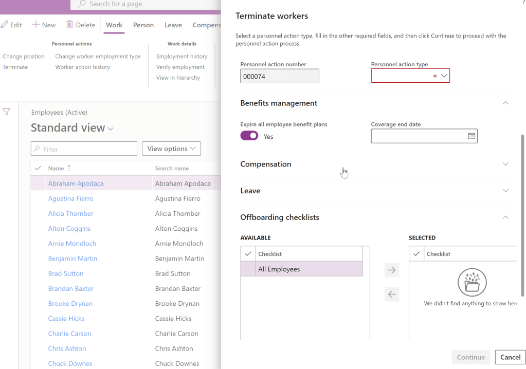 You can also select checklist on a worker, in the personnel management workspace under employees and the tab work.