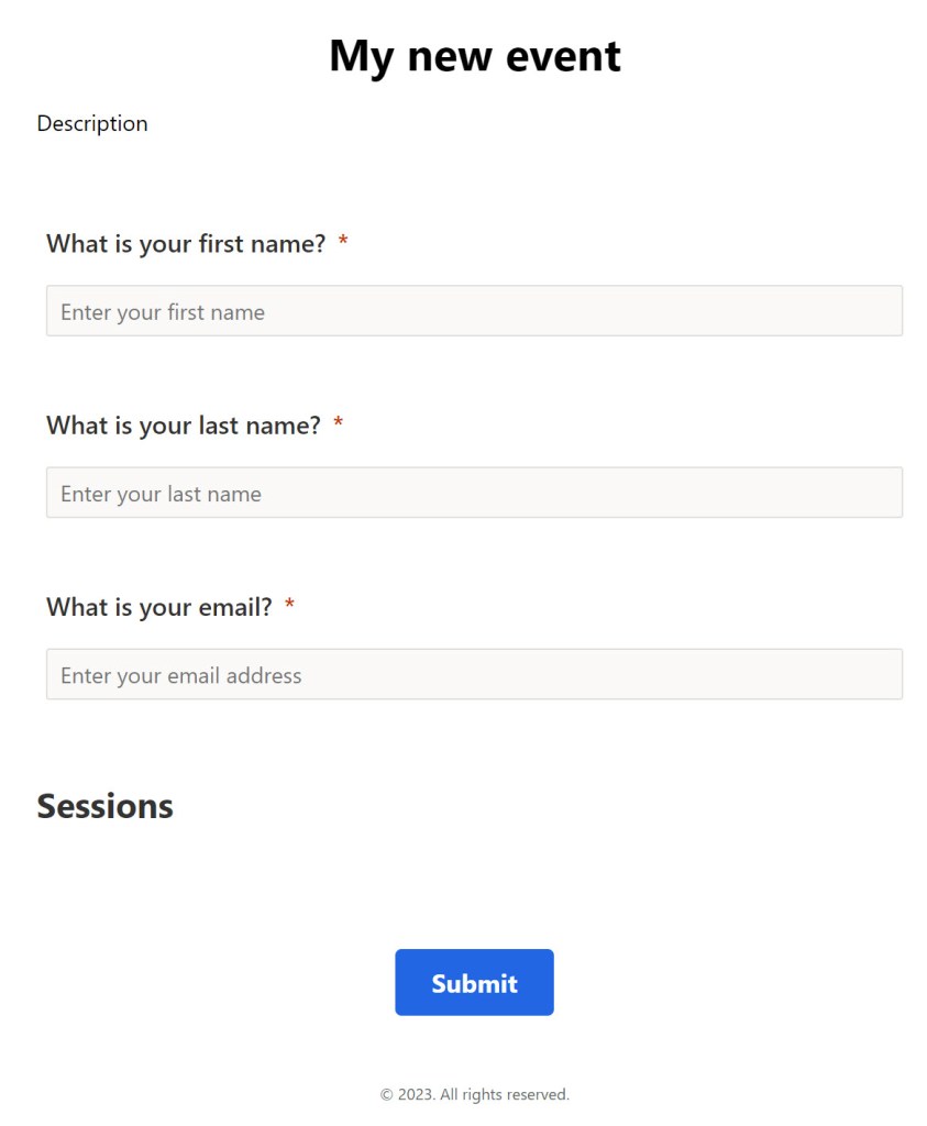 Be aware that when you’ve activated the session-level registrations and added your sessions to the form, the people registering will have to register for at least one session to be able to register for the event.