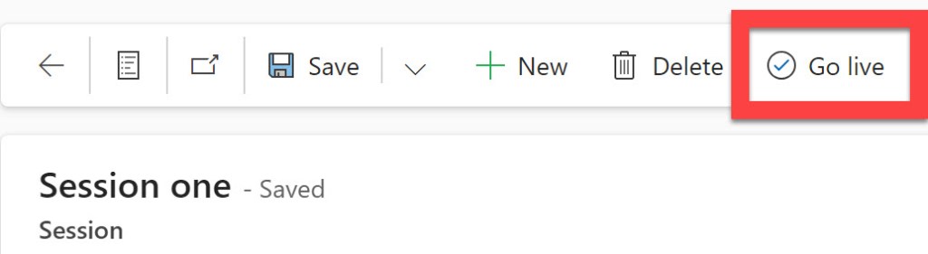 To go live with the sessions, you must open the sessions you want to show and go live with and click go live to them. If you have sessions you want to add to the schedule, but you don’t want people to register, you can add them and not go live with the session. It’ll still be in the system, but not shown in the form.