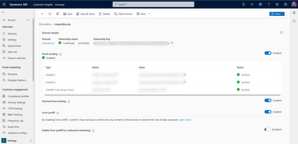 Once this is done, you have to go back to Customer Insights – Journeys -> “Settings” and “Power Pages Website” and create a new connection to your new Power Pages website. If you don’t do this, nothing will work!