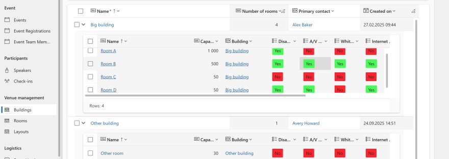 Read about a no-code enhancement for views in model-driven Power Apps. They focus on improving user experience in Customer Insights - Journeys by managing building and room data. By customizing views using the Power Apps grid control, users can efficiently access room information within buildings.